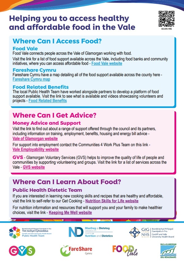One of these programmes of work is to enable access to healthy food through targeted promotion of food related benefits (e.g. Healthy Start). Cardiff & Vale UHB’s Local Public Health Team and Dietetics Team have worked in partnership to produce a resource for professionals and volunteers working with families most in need, to encourage them to access what they are entitled to.
